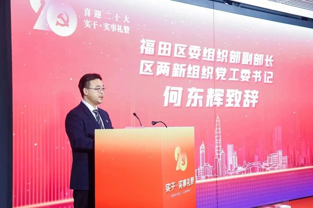 活动现场,福田区委组织部副部长、区两新组织党工委书记何东辉寄语广大非公有制企业党员及党组织持续“做实事、抓实干”,坚持不懈把党的政治优势、组织优势转化为企业发展优势。
